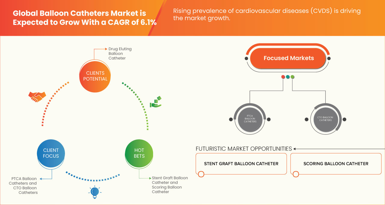 إن الانتشار المتزايد لأمراض القلب والأوعية الدموية، بما في ذلك حالات مثل مرض الشريان التاجي ومرض الشرايين الطرفية، يدفع بشكل كبير الطلب على قسطرة البالون، وخاصة في إجراءات رأب الأوعية الدموية. أصبحت أمراض القلب والأوعية الدموية سبباً رئيسياً للوفاة على مستوى العالم، مع التغيرات في نمط الحياة مثل زيادة استهلاك الأنظمة الغذائية عالية الدهون والتدخين والخمول البدني والإجهاد التي تساهم في تزايد حدوثها. ومع استمرار تقدم السكان في السن وارتفاع متوسط العمر المتوقع، من المتوقع أن يرتفع انتشار هذه الأمراض، مما يخلق حاجة متزايدة لأساليب علاج فعالة.
