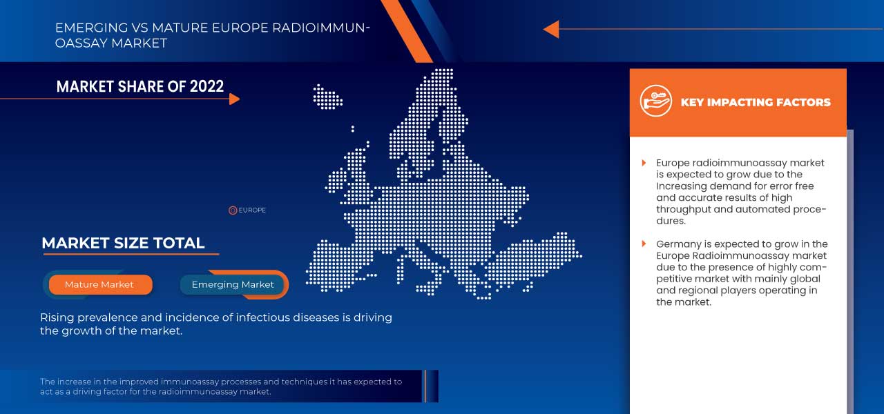 - Ein bedeutender Trend auf dem europäischen Markt für Radioimmunoassays ist die zunehmende Einführung fortschrittlicher Diagnosetechniken zur Erkennung und Quantifizierung von Hormonen, Medikamenten und Biomarkern in klinischen und Forschungsumgebungen.