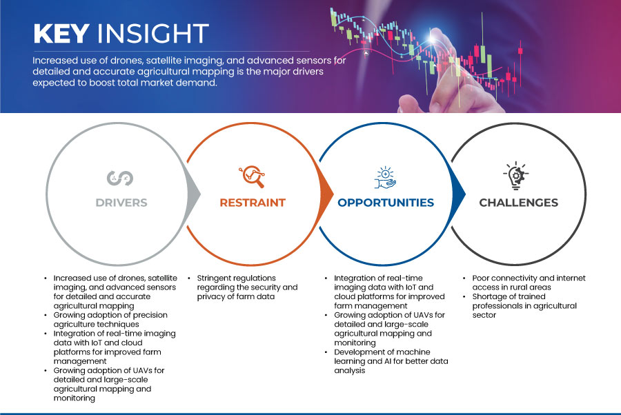 Key players in the Agricultural mapping & imaging market are actively innovating to develop sophisticated mapping and imaging solutions. These technologies not only provide farmers with detailed insights into field conditions but also enable them to adopt precision farming practices effectively. The market's growth is further propelled by increasing global awareness of sustainable agricultural practices and regulatory initiatives promoting environmental conservation. Despite challenges related to initial investment costs and technology adoption barriers, the market is poised for substantial expansion, driven by the imperative to achieve sustainable agricultural outcomes through advanced mapping and imaging technologies.