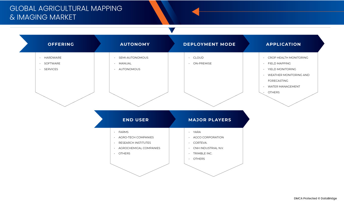 Global Agricultural Mapping and Imaging Market, By Offering (Hardware, Software, Services), Autonomy (Semi-Autonomous, Manual, Autonomous), Deployment Mode (Cloud, On-Premise), Application (Crop Health Monitoring, Field Mapping, Yield Monitoring, Weather Monitoring and Forecasting, Water Management, Others), End User (Farms, Agro-Tech Companies, Research Institutes, Agrochemical Companies), Region (North America, Europe, Asia-Pacific, Latin America, Middle East and Africa) - Industry Trends and Forecast to 2031.