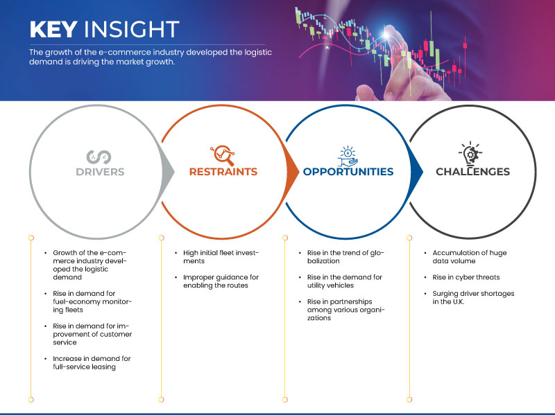 - Das Marktwachstum wird durch die steigende Nachfrage nach Flotten mit Kraftstoffverbrauchsüberwachung und das Wachstum der E-Commerce-Branche vorangetrieben, wodurch der Bedarf an effizienten Logistik- und Liefersystemen steigt.