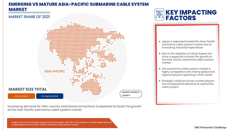 - L'expansion et la modernisation constantes des infrastructures de télécommunications, notamment dans les grands centres économiques et les marchés émergents, ainsi que la nécessité d'assurer une communication internationale sans faille et une interconnexion optimale des centres de données, accélèrent encore la demande de systèmes de câbles sous-marins performants et à haute capacité dans la région Asie-Pacifique.