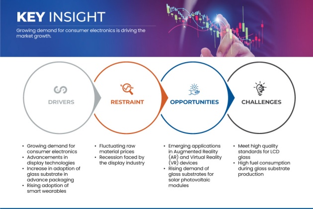 - 소비자들이 고해상도, 내구성, 사용자 친화적 장치를 원함에 따라 첨단 디스플레이 기술에 대한 수요가 증가함에 따라 유리 기판 시장이 성장하고 있습니다.