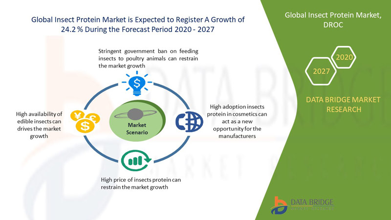 The Global Insect Protein Market valued at USD 845.41 million in 2023 is projected to reach USD 4,943.11 million by 2031, and will grow at a CAGR of 24.7% during the forecast period of 2024-2031.