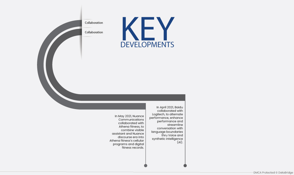 Data Bridge Market Research는 아시아 태평양 음성 및 음성 인식 시장의 주요 아시아 태평양 음성 및 음성 인식 시장 참여자로 다음 회사를 인식합니다. 24]7.ai, Inc(미국), 3M(미국), Acapela Group, Advanced Voice Recognition Systems, Inc.(미국), Apple, Inc.(미국), Genesta Property Nordic AB(스웨덴), Genesys(미국)