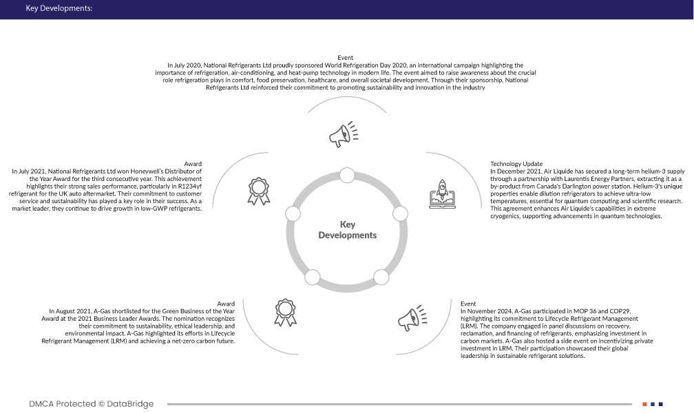 Die Marktforschung von Data Bridge analysiert Linde PLC (Irland), Arkema (Frankreich), The Chemours Company (USA), Honeywell International Inc. (USA) und AIR LIQUIDE (Frankreich) als die wichtigsten Marktteilnehmer.