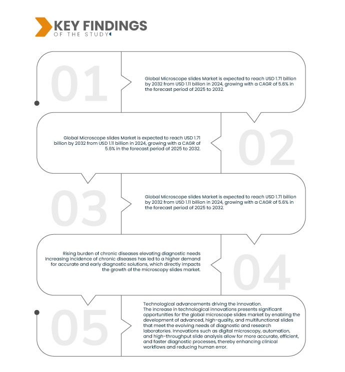 データブリッジマーケットリサーチは、世界の顕微鏡スライド市場は2025年から2032年の予測期間に5.6%のCAGRで成長し、2024年の11億1,000万米ドルから2032年には17億1,000万米ドルに達すると予測しています。