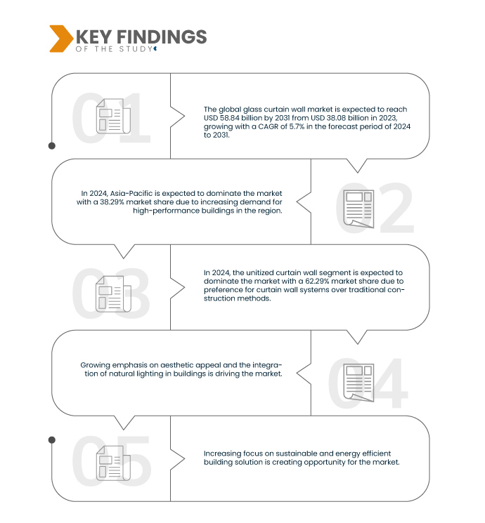 من المتوقع أن تهيمن شريحة الحائط الساتر الموحد على السوق في عام 2024 بحصة سوقية تبلغ 62.29٪ لأن الحائط الساتر الموحد سهل التركيب مقارنة بالجدران الزجاجية التقليدية الأخرى كما أنه يتمتع بجاذبية جمالية أكبر.