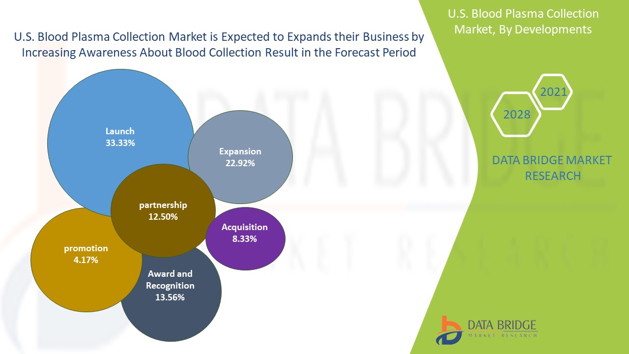 The major players dealing in U.S. blood plasma collection market are introducing strong range of products provider along with launching new products and adopting strategic initiative such as acquisition, agreement, business expansion, award and recognition into the market. This helped companies to maximize the sales with enhanced product portfolio.
