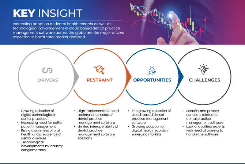 • The increasing demand for dental practice management software is primarily driven by the growing adoption of digital health solutions, rising patient expectations for seamless care, and the need for streamlined administrative processes in clinics