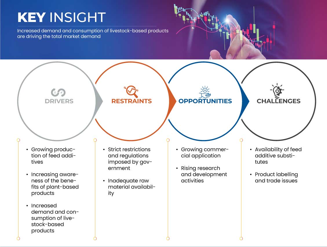 Feed additives are the type of products used in animal nutrition to improve the characteristics of feed, such as to enhance the flavor or make feed materials more readily digestible. It is a mixture thereof chemical substances and microorganisms other than feed premixes and materials, which have the characteristics of certain functionality. Globally, the production of feed additives increases daily, boosting the demand of the market.