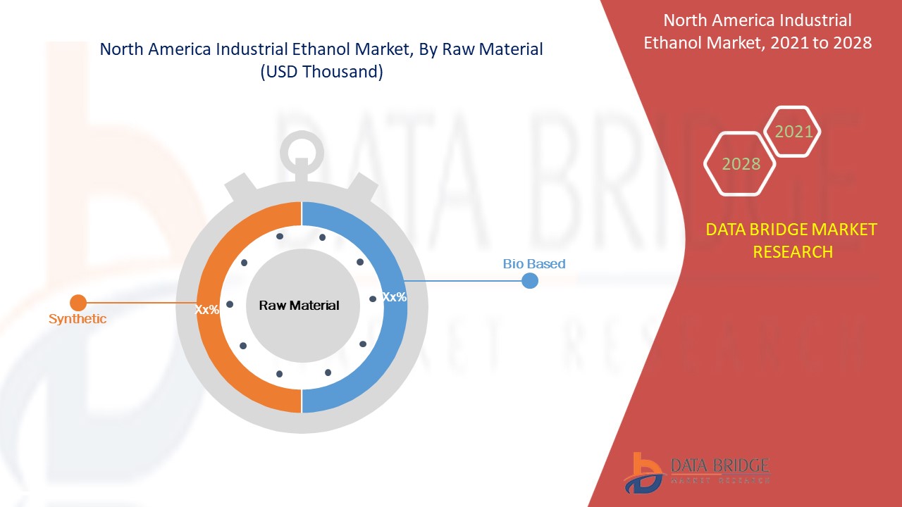 North America Industrial Ethanol Market Segmentation, By Raw Material (Bio Based and Synthetic), Type (Absolute Ethanol, Ethanol 95%, Denatured Ethanol and Others), Application (Paints and Coatings, Pharmaceutical, Food & Beverages, Printing Ink, Agricultural, Household and Industrial Cleaning Solutions, Cosmetics and Personal Care, Adhesives and Others) - Industry Trends and Forecast to 2033