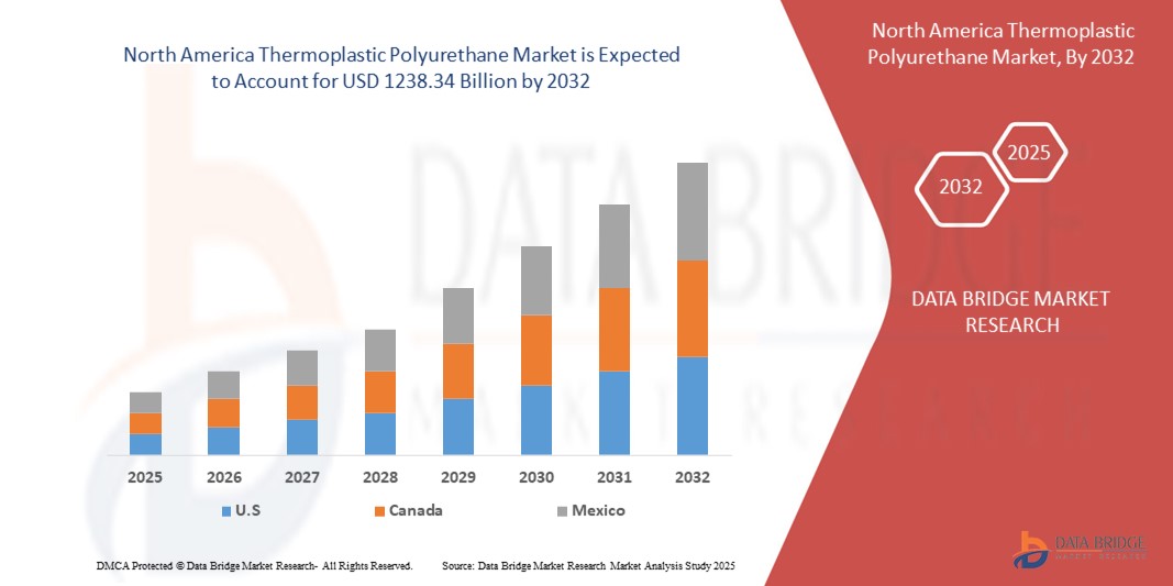 - The North America thermoplastic polyurethane market size was valued at USD 753.88 million in 2024 and is expected to reach USD 1238.34 billion by 2032, at a CAGR of 6.40% during the forecast period